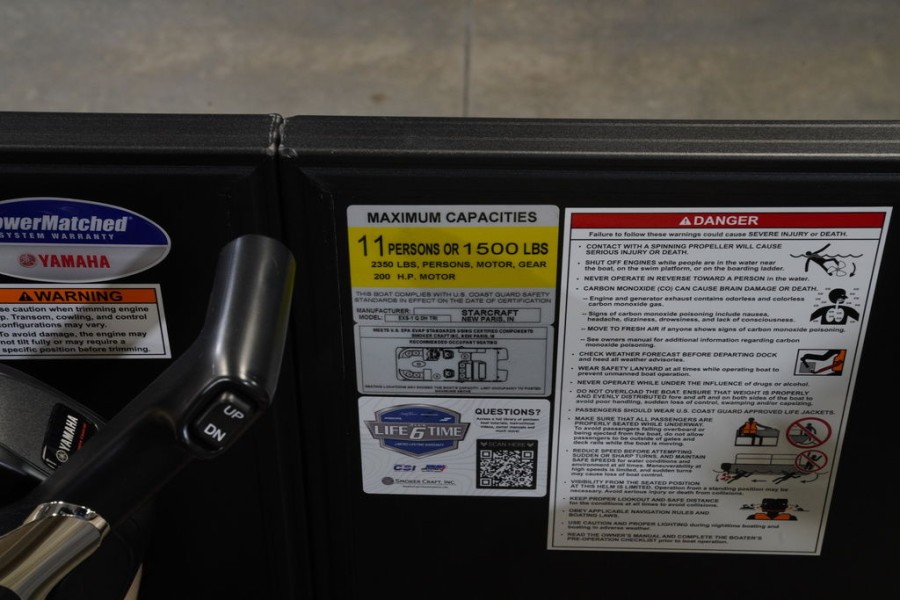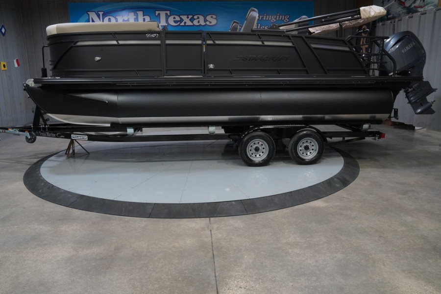 Choosing this specific Starcraft Marine model means investing in an affordable high-performance experience. The combination of a sleek, customizable exterior (featuring black powder coated rails) and its impressive list of built-in amenities—from console storage to extended rear decking—makes it the ultimate family boating companion.