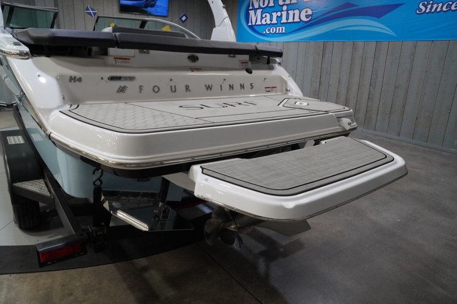 The reliable engine systems are complemented by a robust trailer package, ensuring easy transport and maintenance of your new Four Winns H4 Surf boat. This commitment to quality across every component solidifies the reputation of this exceptional model in the luxury sport boat market.