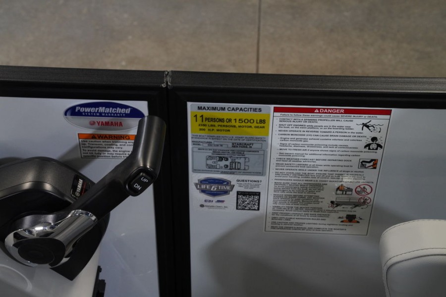 The Starcraft Marine brand sets itself apart by delivering an affordable yet high-performance pontoon boat experience. From its sleek black exterior rails to the customizable color panels, you can personalize your ponton while benefiting from professional-grade features like SeaStar hydraulic steering and robust gauges (speedometer, tachometer, fuel gauge). The EXS series truly combines style with superior functionality for every boating adventure.