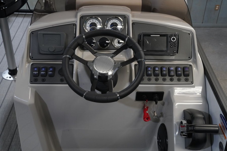This premium ponton boat is equipped with numerous features designed for comfort, safety, and performance. The inclusion of the HMX PR25 performance package further enhances its stability and overall handling characteristics, making it an ideal choice for diverse water activities.