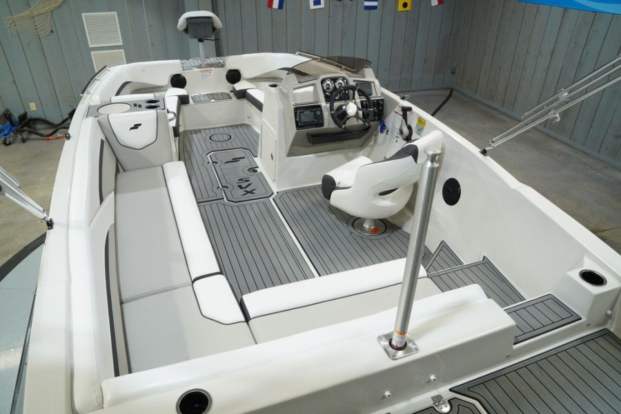 The Starcraft Marine SVX 211 OB is a remarkable hybrid vessel, effortlessly blending the expansive seating and usability of a traditional deck boat with the agility required for high-energy water sports. This unique combination means that whether you are planning a leisurely day of cruising on calm waters or seeking adrenaline thrills like wakeboarding, this fiberglass powerboat is built to deliver an exhilarating experience.