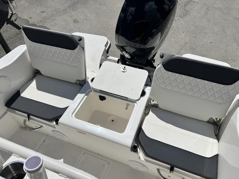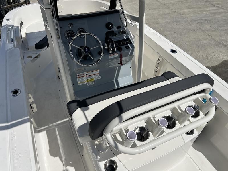 The T20CC’s deep V‑hull and wide bow create smooth handling while providing ample space for casting or relaxing on livewells. The aft bench seat offers easy access to the cockpit, where a self‑bailing design keeps water out ...