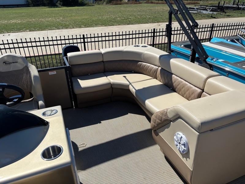 The 2022 Massimo Pleasure 18 is a well-maintained pontoon boat located in Sanger. This used vessel offers an inviting 8-foot-5-inch beam and an overall length of 18 feet, making it ideal for family outings or small group adventures on the water.