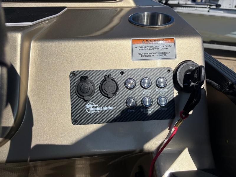 Optional amenities include a swim ladder for quick access to the water, a Bimini top to provide shade and protection from light rain, as well as an integrated sound system with Bluetooth capability so you can enjoy music while cruising. This combination of comfort, performance, and convenience makes the Massimo Pleasure 18 a standout choice among pontoon boats in Sanger.