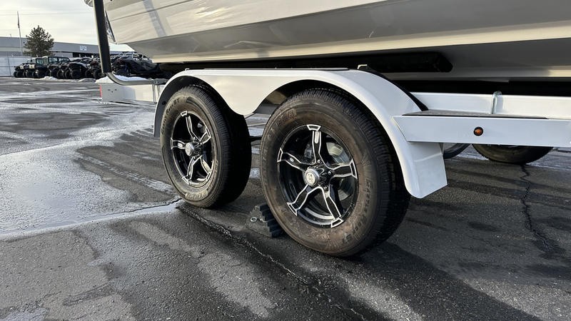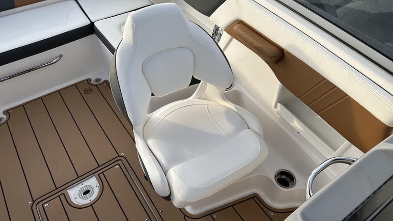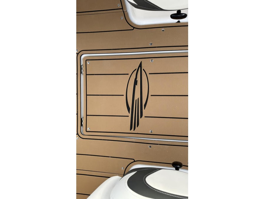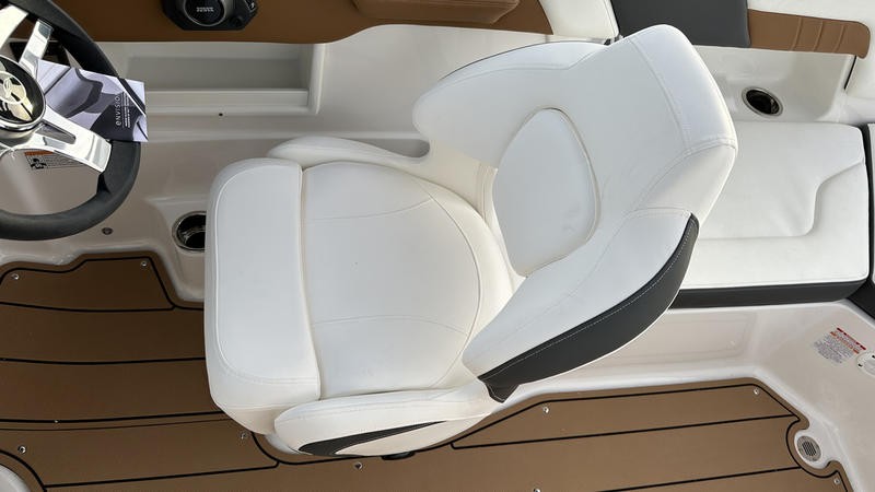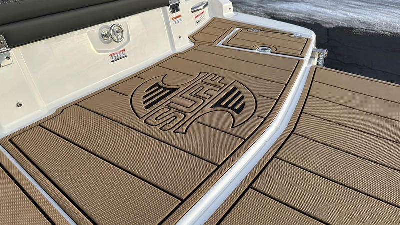 The hull side gelcoat is available in Alloy Gray, Biscayne Blue, Black, Fire Red, Steel Blue or White. Deck accent graphics match your chosen color for a cohesive look. Interior colors include Black, Blue, Steel Blue, Sterling and Cayenne White.