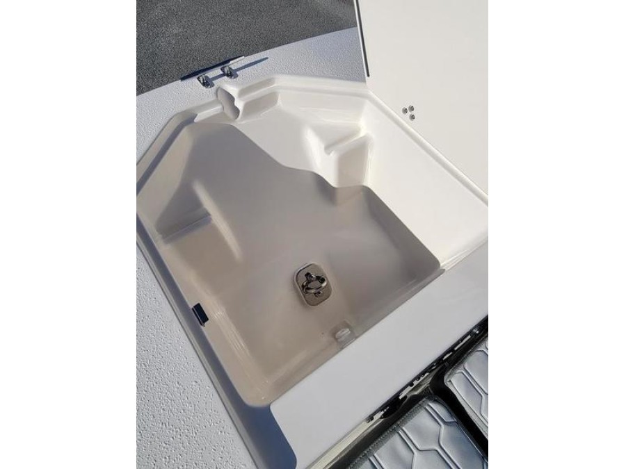 The design of the 2026 Carolina Skiff 19 LS center console makes it a serious contender for any dedicated angler. We have packed this boat model with essential fishing amenities to maximize your time on the water and minimize setup time. Anglers will appreciate the six flush-mounted rod holders located right at the console, providing immediate access when you need it most. Additional features include convenient velcro rod savers situated under the gunnel and a substantial 18-gallon stern live well—perfect for keeping bait fresh throughout your day of fishing.