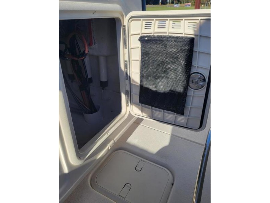 The power plant for this exceptional boat is robust yet manageable. It features single outboard propulsion powered by a capable Suzuki engine with an output of 115 HP. Running on gas, the vessel boasts ample fuel capacity and utilizes durable fiberglass construction throughout its hull.