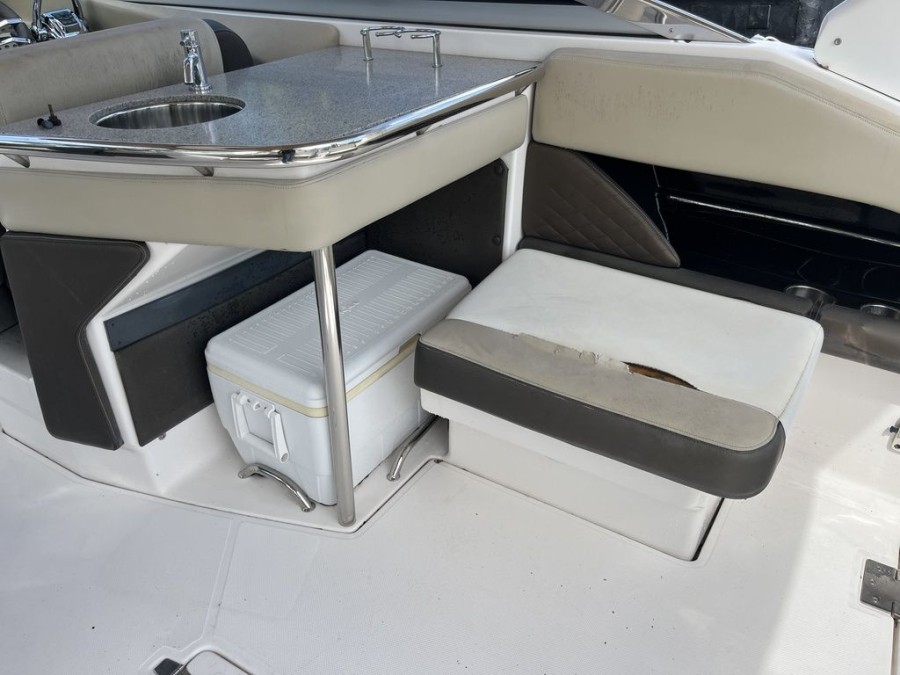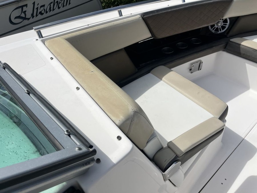 This outstanding pre-owned Regal boat features a robust powertrain, powered by twin Mercruiser 350 MAG Axius engines. Delivering an impressive combined horsepower, these reliable Mercury outboards ensure smooth performance whether you are cruising to distant shores or enjoying spirited watersports right off the bow. With low engine hours on both units, this Regal Bowrider is ready for immediate enjoyment and adventure.