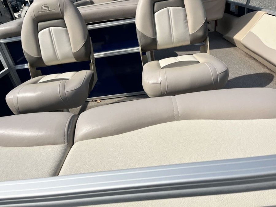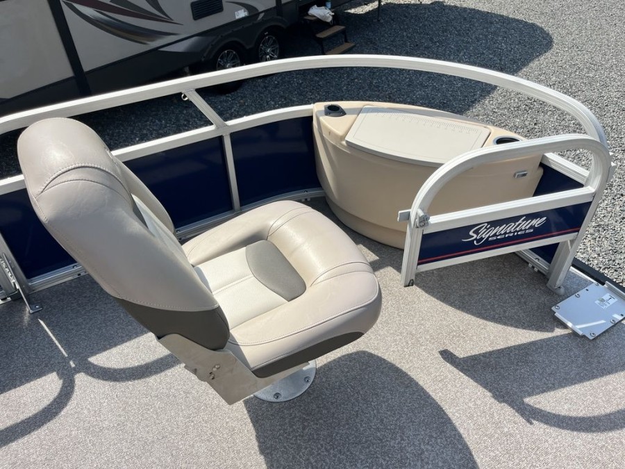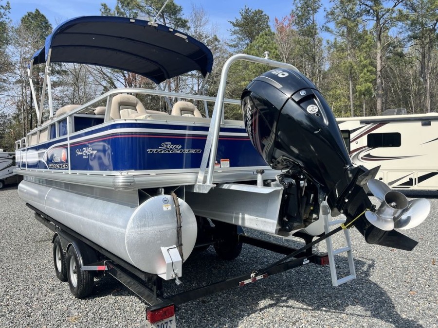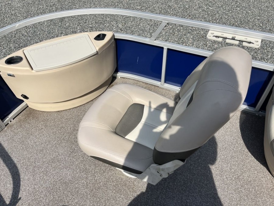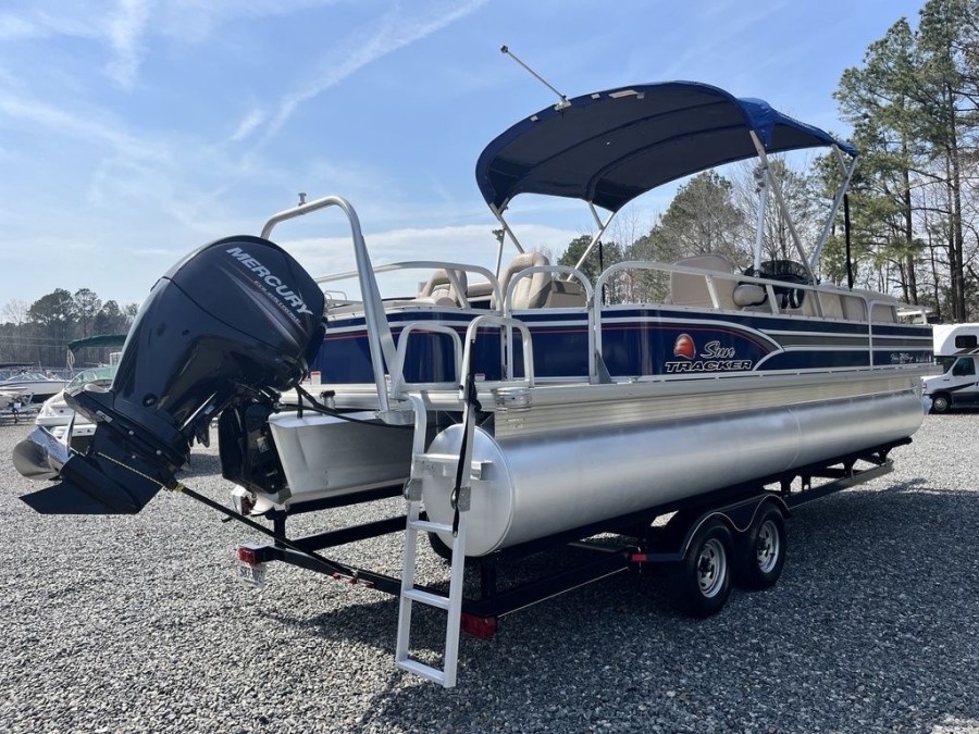 [read more]Discover exceptional deep lake angling opportunities with this pre-owned Sun Tracker fishing barge. This durable and highly functional aluminum pontoon boat is designed for serious anglers who demand stability, capacity, and numerous specialized features on the water. Whether you are targeting large schools of fish or planning a full day trip outing, this 2015 model provides the perfect platform.