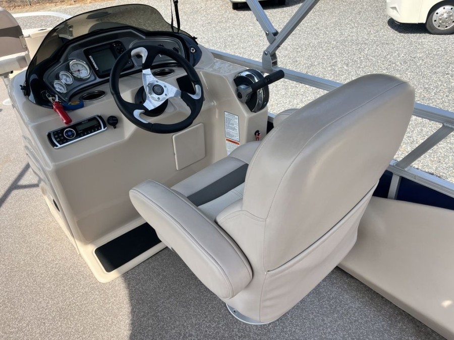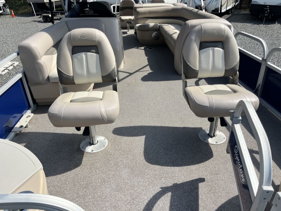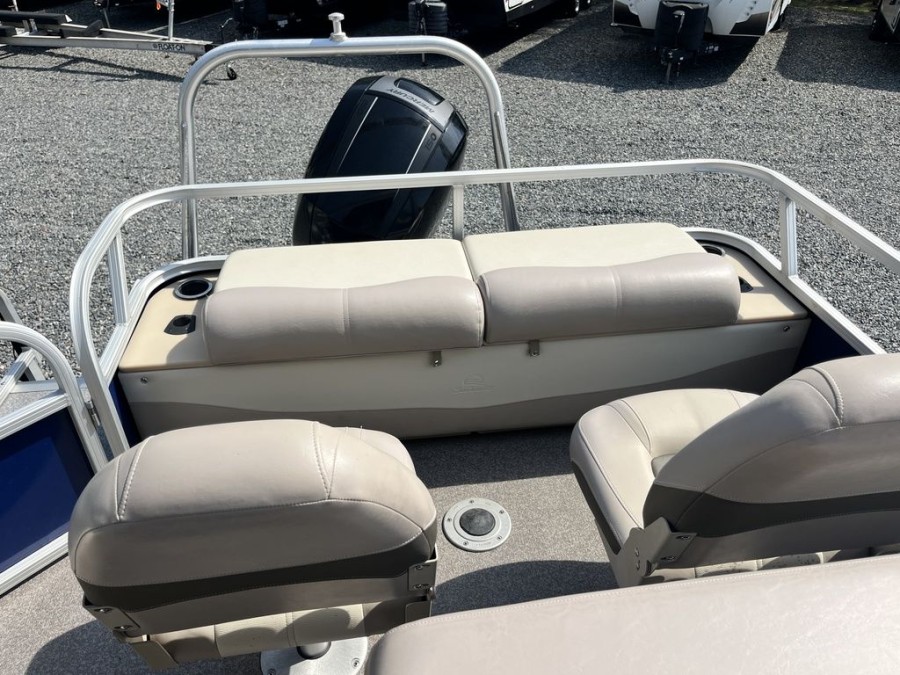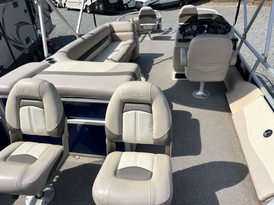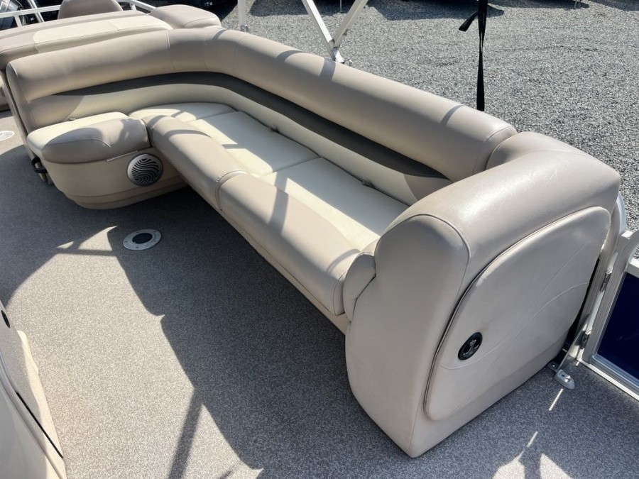[read more]Discover exceptional deep lake angling opportunities with this pre-owned Sun Tracker fishing barge. This durable and highly functional aluminum pontoon boat is designed for serious anglers who demand stability, capacity, and numerous specialized features on the water. Whether you are targeting large schools of fish or planning a full day trip outing, this 2015 model provides the perfect platform.