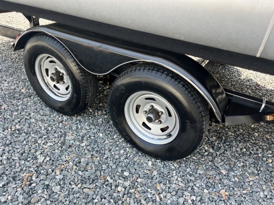 This substantial fishing barge boasts an impressive overall length while maintaining excellent maneuverability. Built with robust aluminum construction, it offers reliability in various water conditions. The boat is rated for up to a powerful engine setup of 150 horsepower, providing ample power when paired with its Mercury outboard motor.