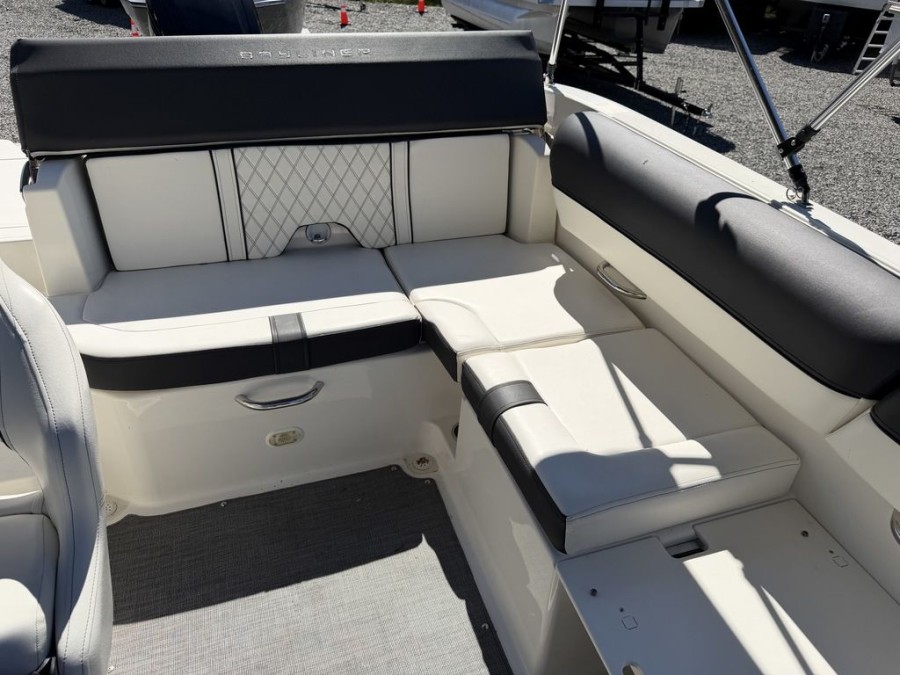 This 20' long bayliner is equipped with features tailored to modern boating needs. Enjoy effortless relaxation under the protective Bimini Top while utilizing the spacious seating areas for your family and friends. The dedicated swim platform, complete with a ladder, makes jumping into the water or setting up watersports activities simple and safe.