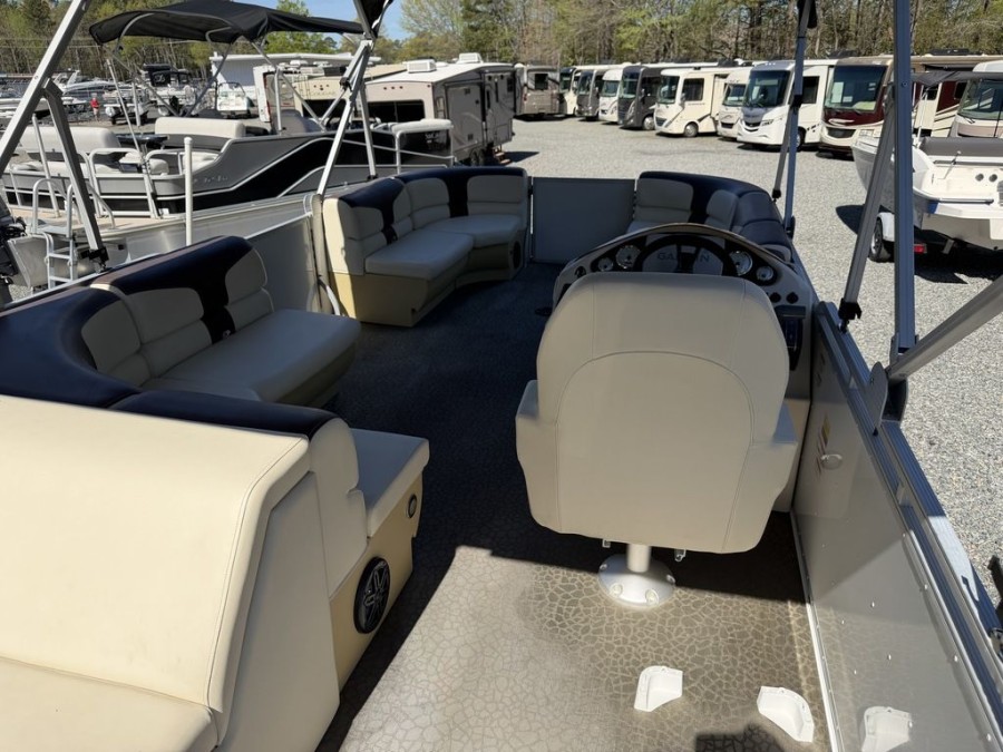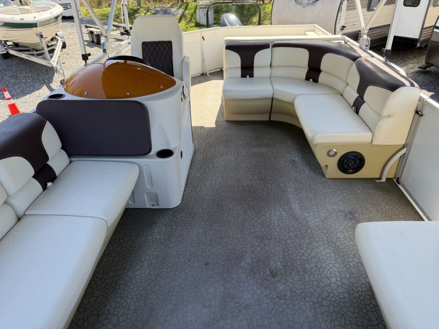 [read more]Discover unparalleled comfort and style on the water aboard this exceptional pre-owned Lexington 321 Pontoon. This low-hour pontoon boat is designed for creating memorable family outings, hosting large groups of friends, or simply enjoying a relaxing day cruising the lakes, rivers, or coastlines. With only 87 engine hours and meticulous care, this Lexington 321 represents turn-key readiness.