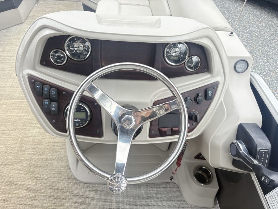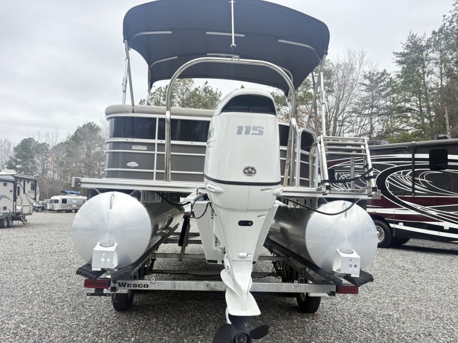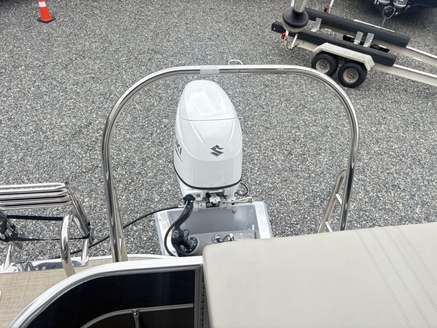 Powering this highly capable aluminum pontoon is a fuel-efficient Suzuki 115 four-stroke outboard engine. This reliable motor provides effortless cruising and dependable power, making it ideal whether you are exploring winding rivers or navigating open bays.