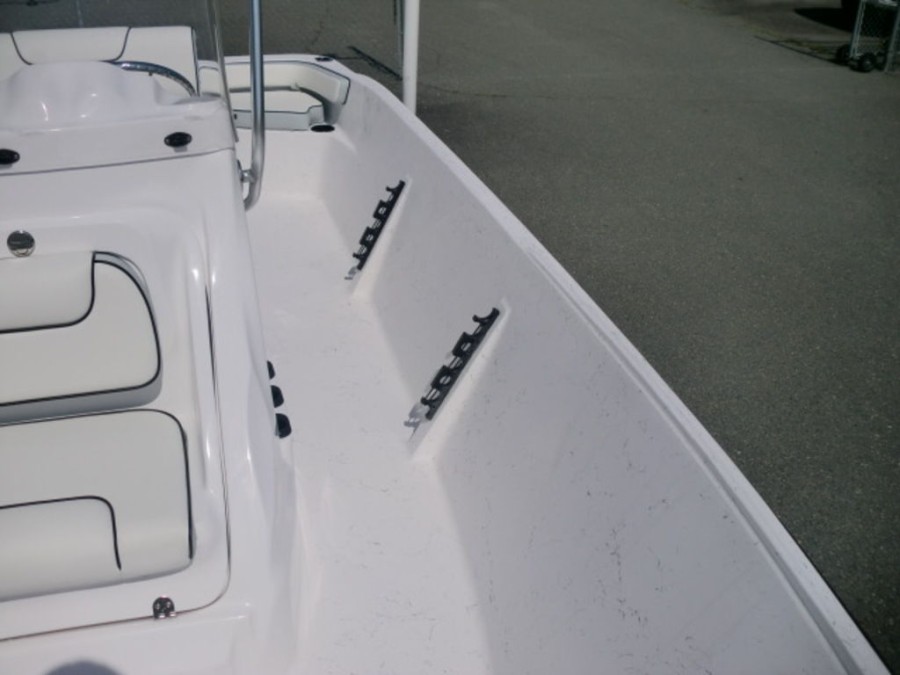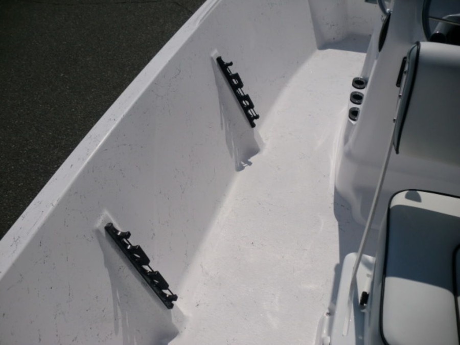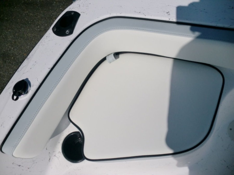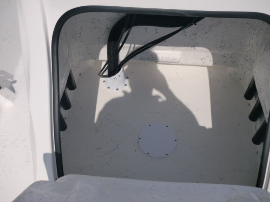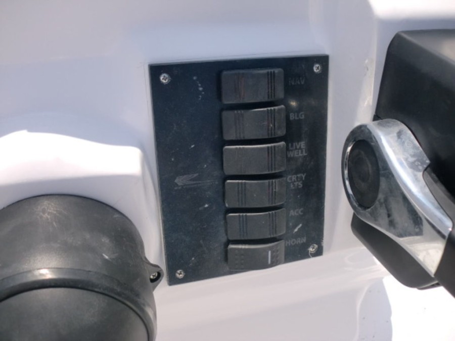 The boat features hydraulic tilt steering, dual rear livewells with cushioned seats, and fold‑away console storage to keep your gear organized. Enjoy the convenience of a bow fish box for easy fishing trips and a full gauge package that keeps you informed on all vital metrics.