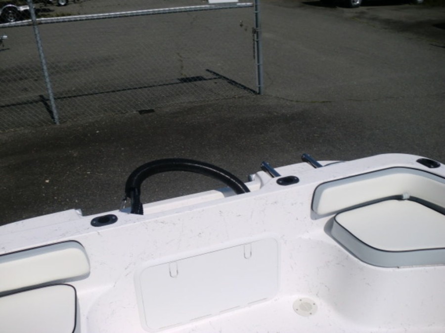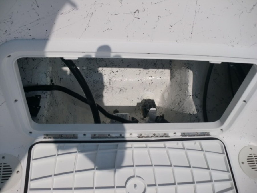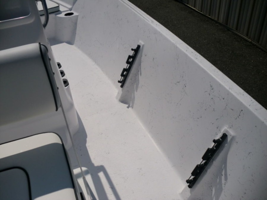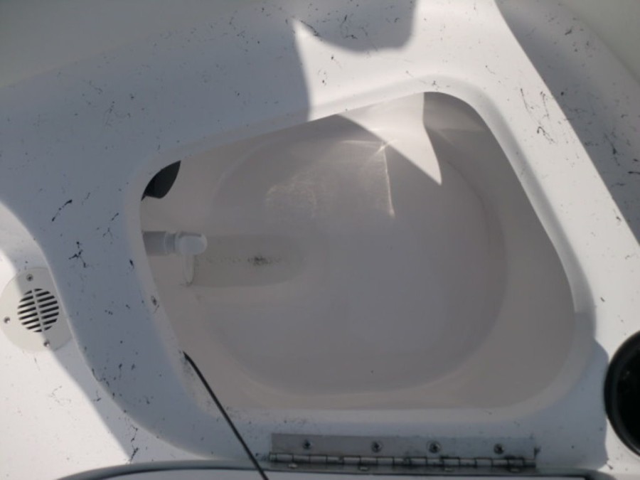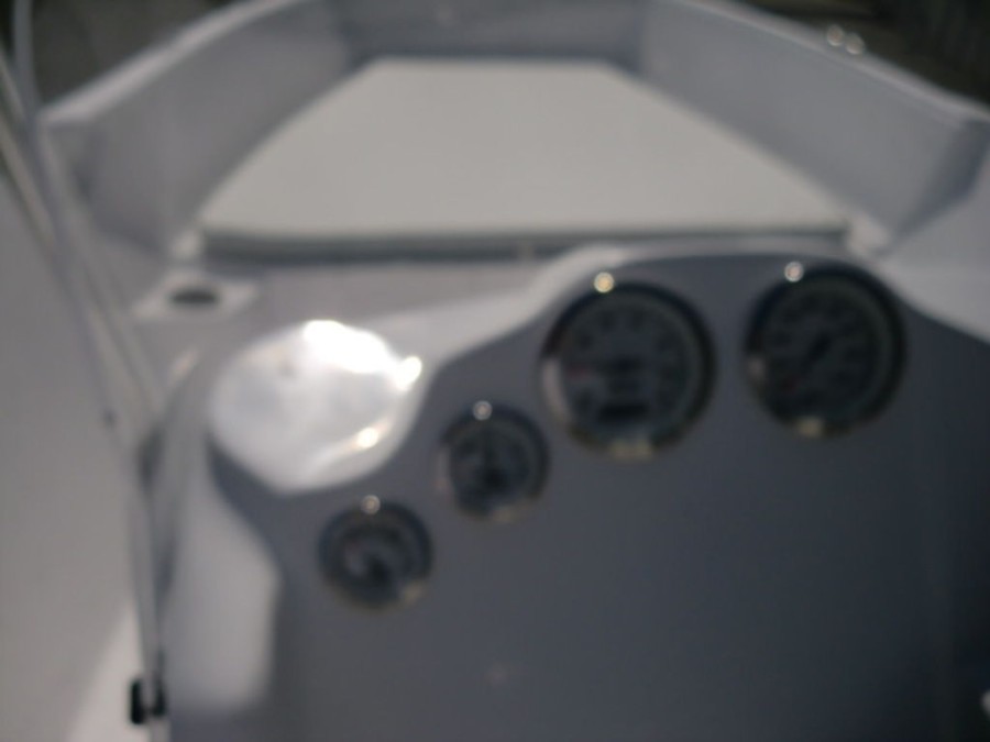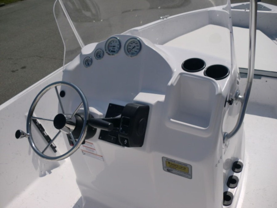 The boat features hydraulic tilt steering, dual rear livewells with cushioned seats, and fold‑away console storage to keep your gear organized. Enjoy the convenience of a bow fish box for easy fishing trips and a full gauge package that keeps you informed on all vital metrics.
