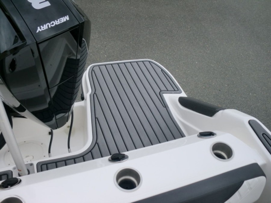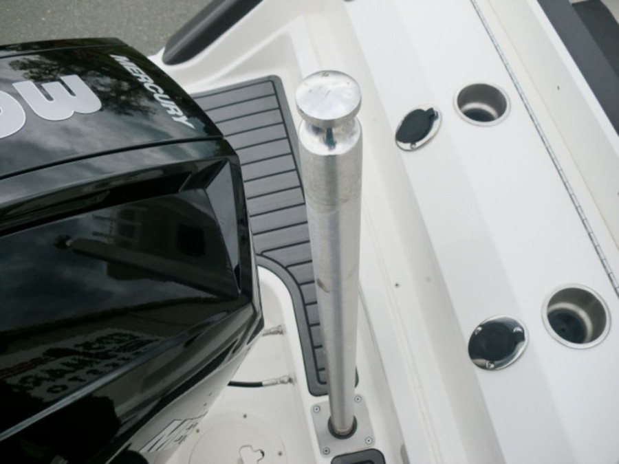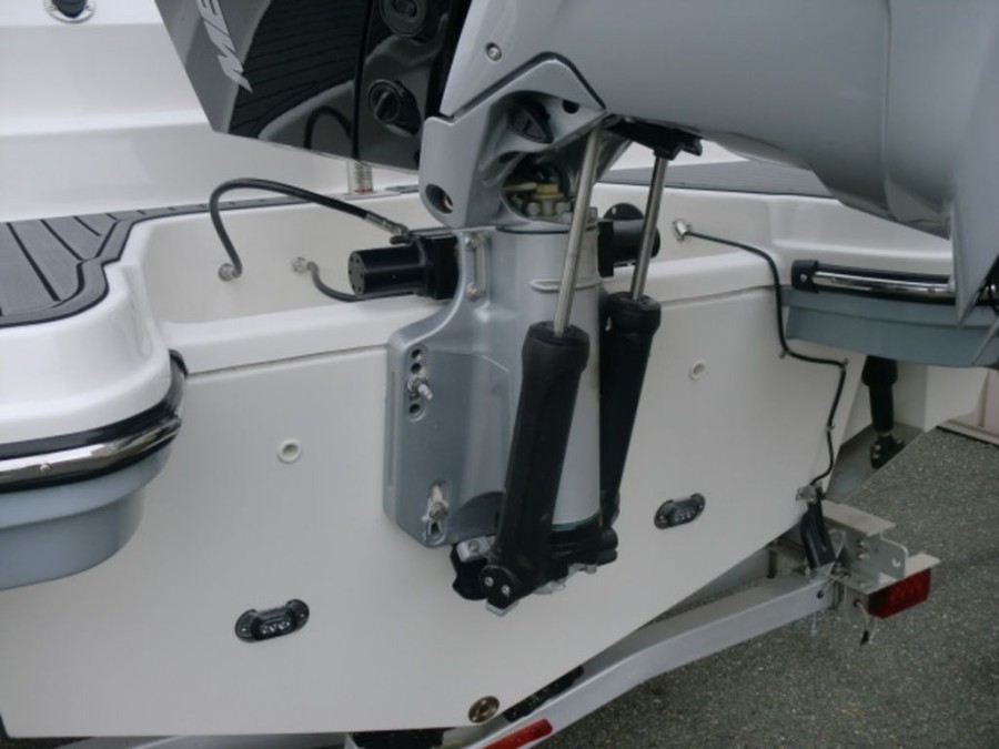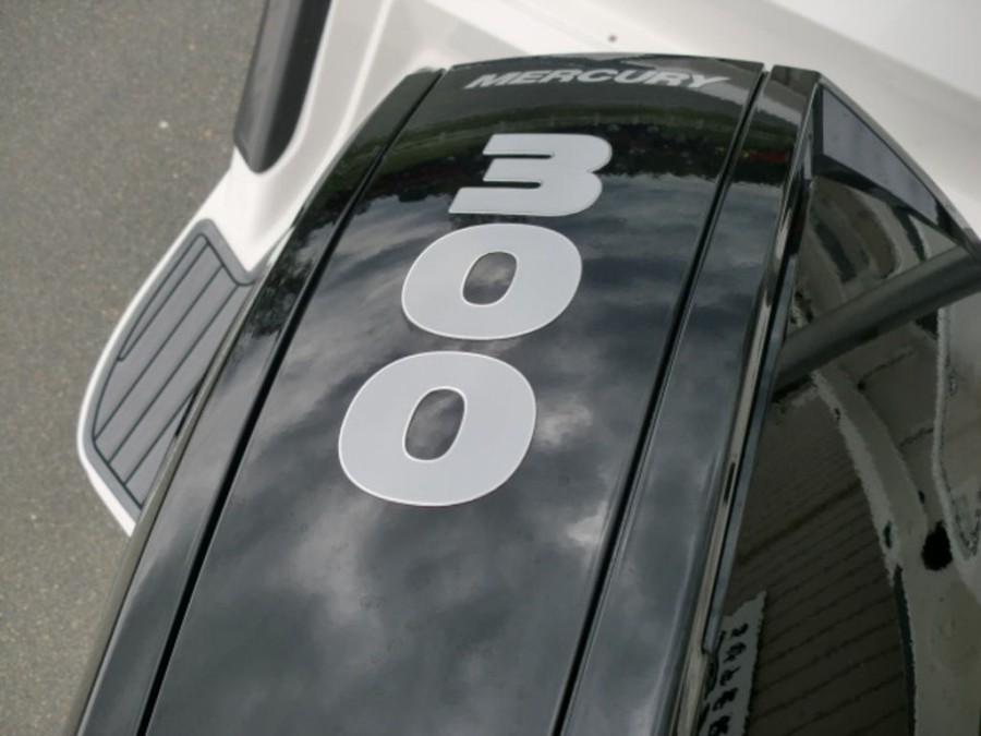 Powered by a V-8 Mercury Verado 4-stroke engine delivering 300 AMS horsepower. The single outboard setup offers smooth thrust and excellent handling for cruising or racing.