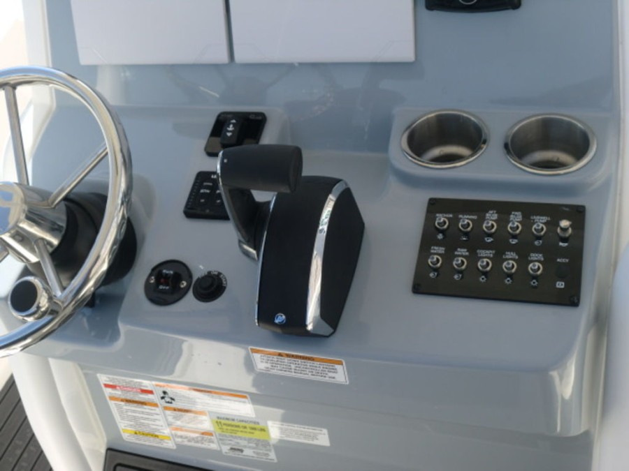 The boat is powered by a robust 300 AMS V8 Mercury Verado engine, delivering powerful performance with zero hours on the clock. Its single outboard configuration ensures reliable propulsion for both cruising and high‑speed adventures.