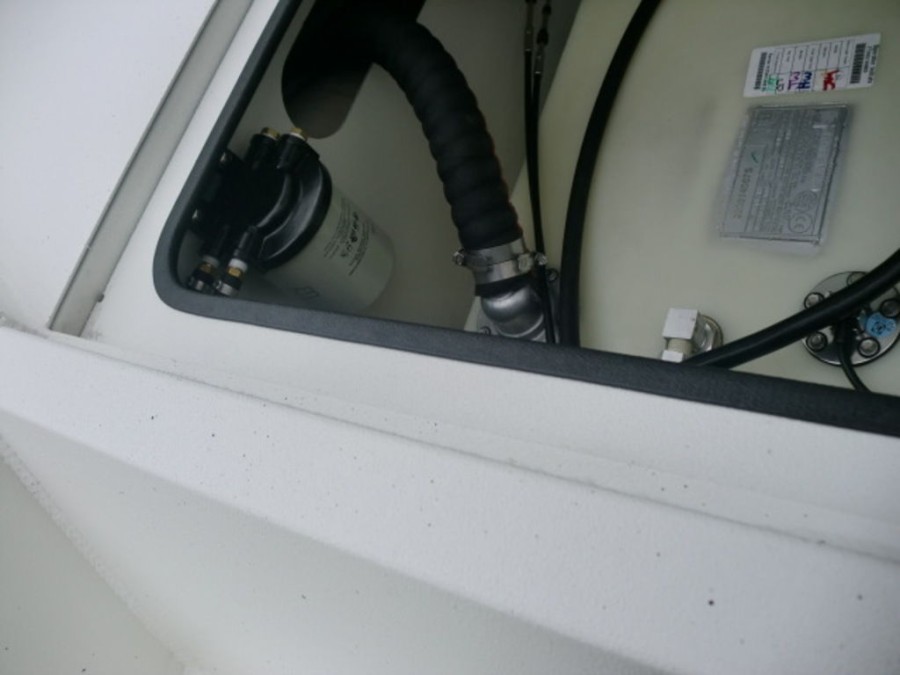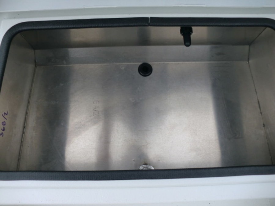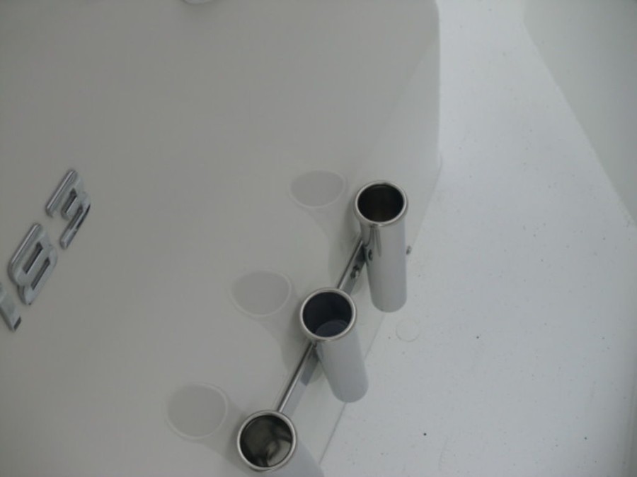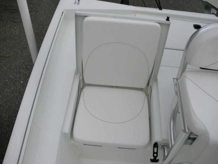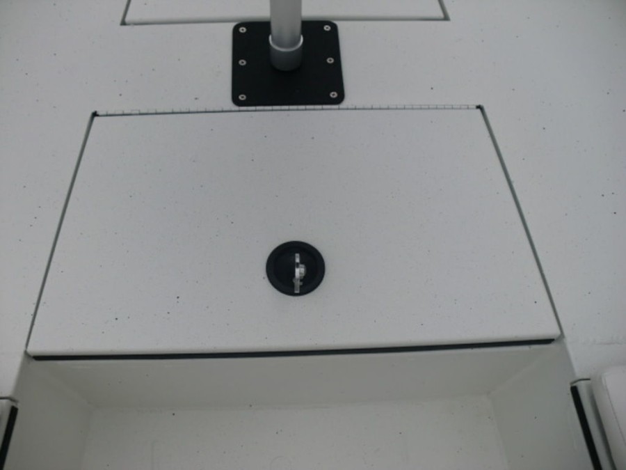 The cockpit features rod‑box cushions, a leaning post with back rest, and hydraulic steering, providing both luxury and control. Navigation is simplified by the Helix 7 Chirp MDI GPS system integrated into the dashboard.