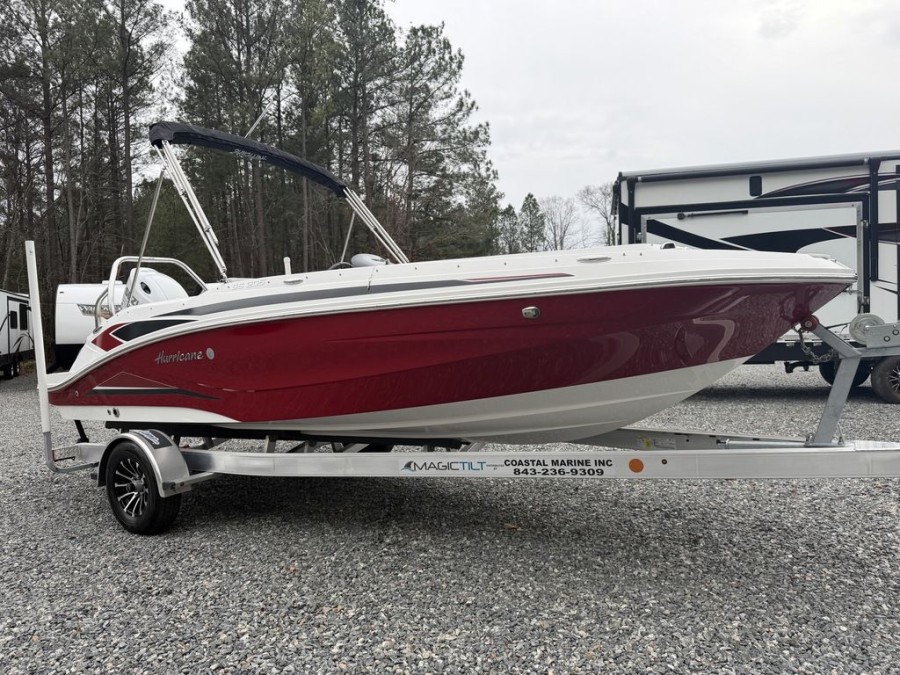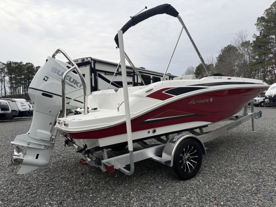 [read more]Discover exceptional performance and unmatched versatility with this late-model Hurricane 205 deck boat. The 2023 model year SunDeck Sport 205 OB offers a perfect blend of modern styling, spacious design, and reliable power, making it an ideal choice for family adventures on the lake or cruising out to the sandbar.