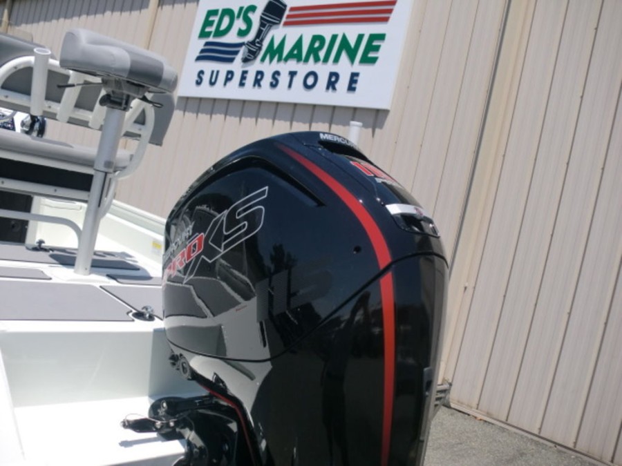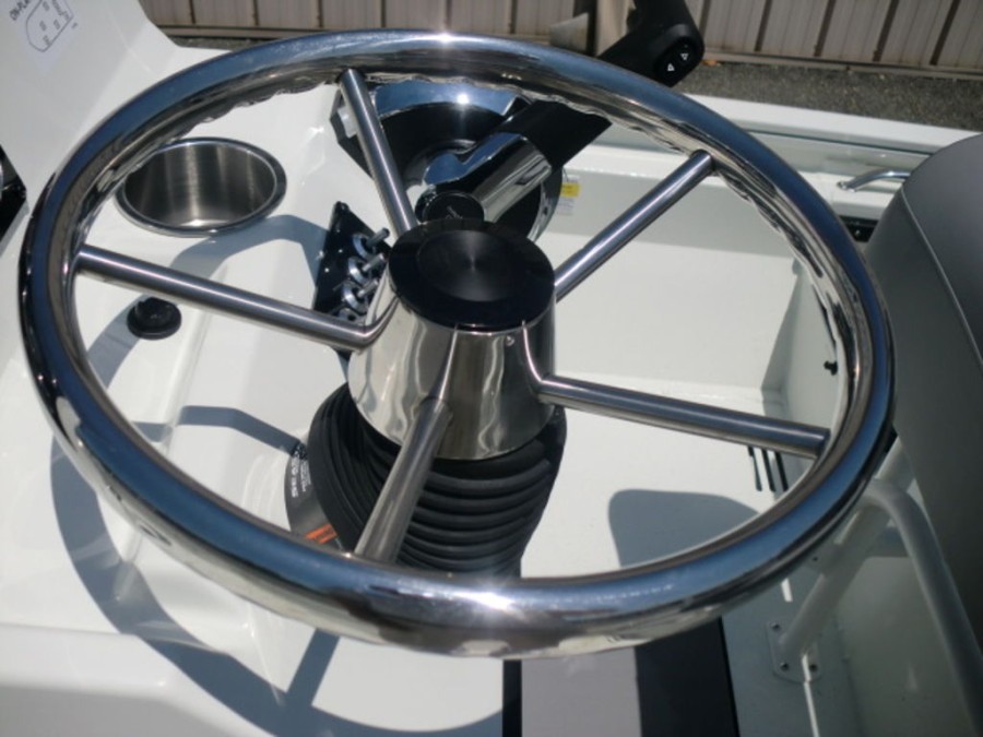 The vessel is driven by a robust 115 hp Mercury Pro XS engine, delivering smooth speed and reliable power across calm lakes or open seas. Hydraulic steering with tilt ensures precise handling in any condition.
