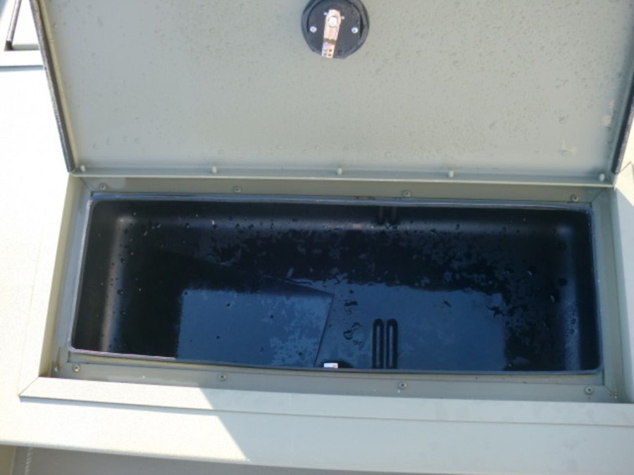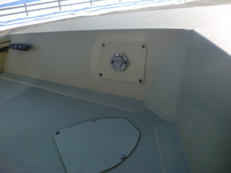 The boat comes with a galvanized trailer equipped with vortex hubs, ensuring safe and reliable transportation.