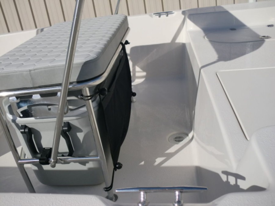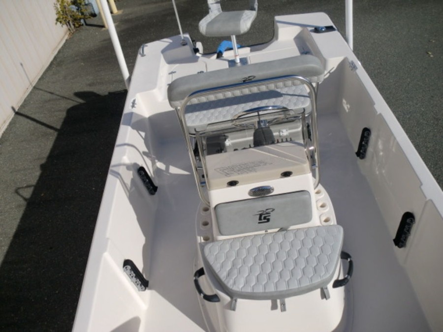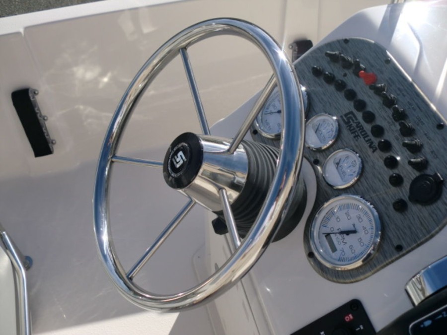 Equipped with hydraulic steering for smooth handling at high speeds, the boat’s fiberglass/composite construction ensures durability while keeping weight low. The custom aluminum trailer with vortex hubs simplifies towing from any vehicle, allowing you to bring this powerful skiff wherever your adventures take you.
