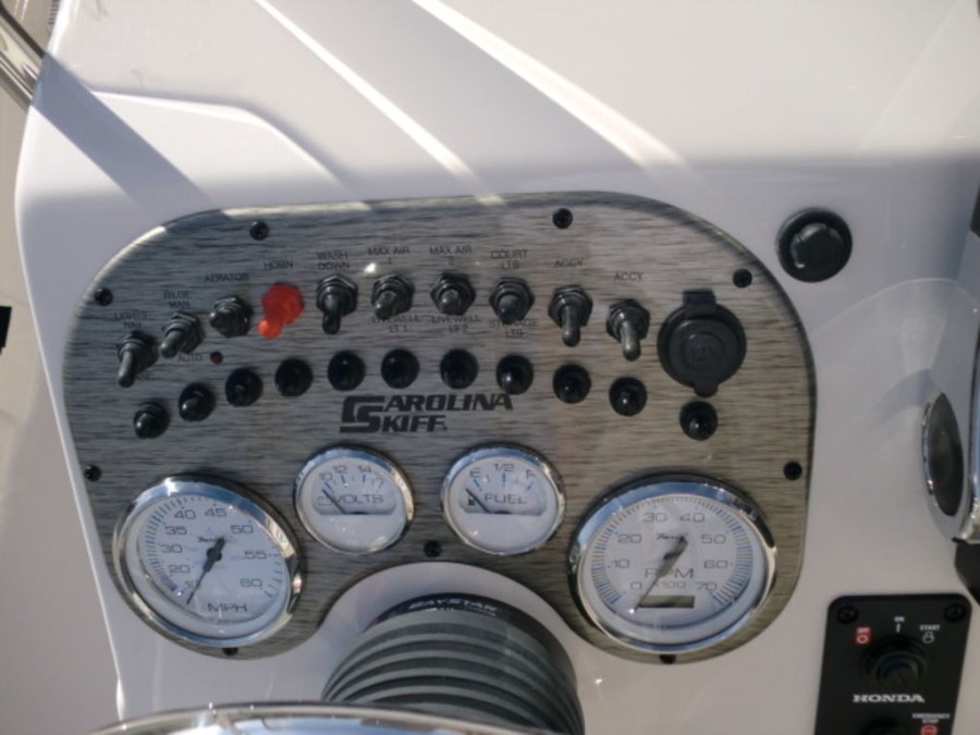 The 2025 Carolina Skiff 178 JLS offers a sleek Shark Skin Gray hull, hydraulic steering and the reliable power of a Honda 115‑horsepower engine. Designed for performance on rivers and lakes alike, this new model features a spacious beam of 79 inches and an overall length of 17 ft 8″, making it ideal for anglers seeking stability and speed.
