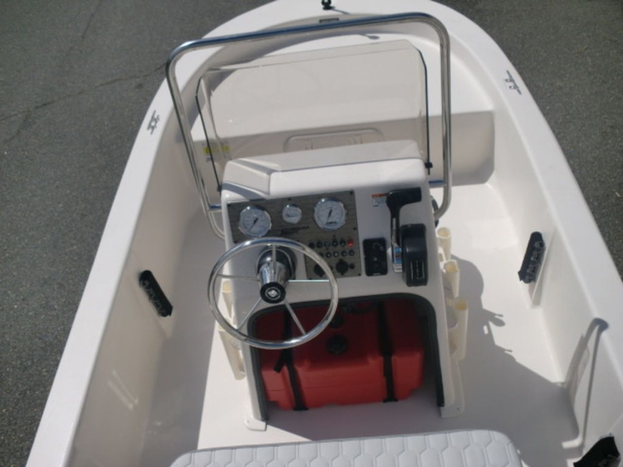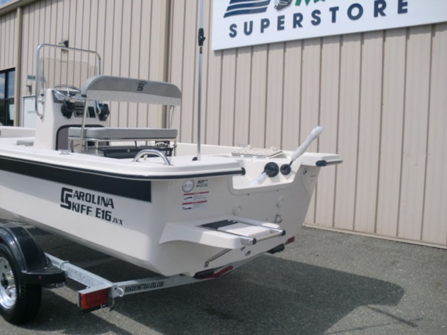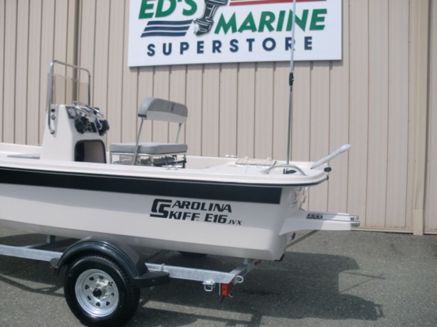 This Carolina Skiff E16 JVX center console boat combines modern design with reliable power, making it an ideal choice for boating enthusiasts seeking a brand‑new vessel in pristine condition.