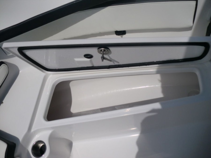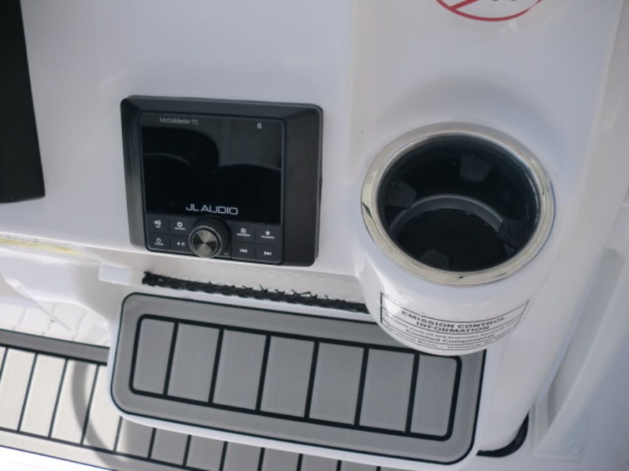 The boat is equipped with a robust 150 HP Yamaha engine, ensuring powerful performance and smooth cruising on any waterway. Engine hours are zero, guaranteeing pristine condition.