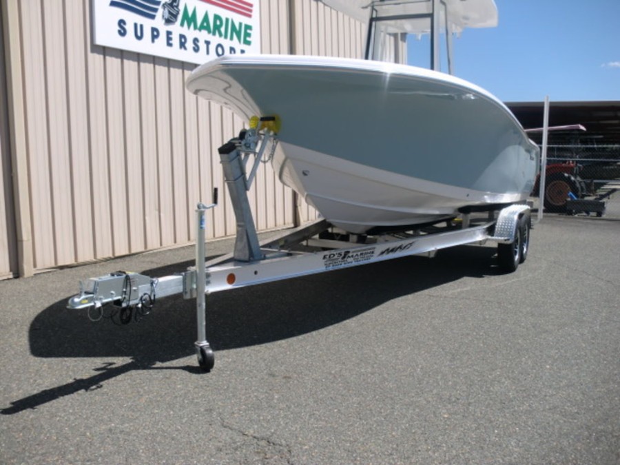 The boat comes paired with a custom tandem aluminum trailer featuring built‑in brakes. This combination ensures safe, convenient transport to any launch site of your choosing.