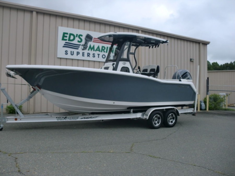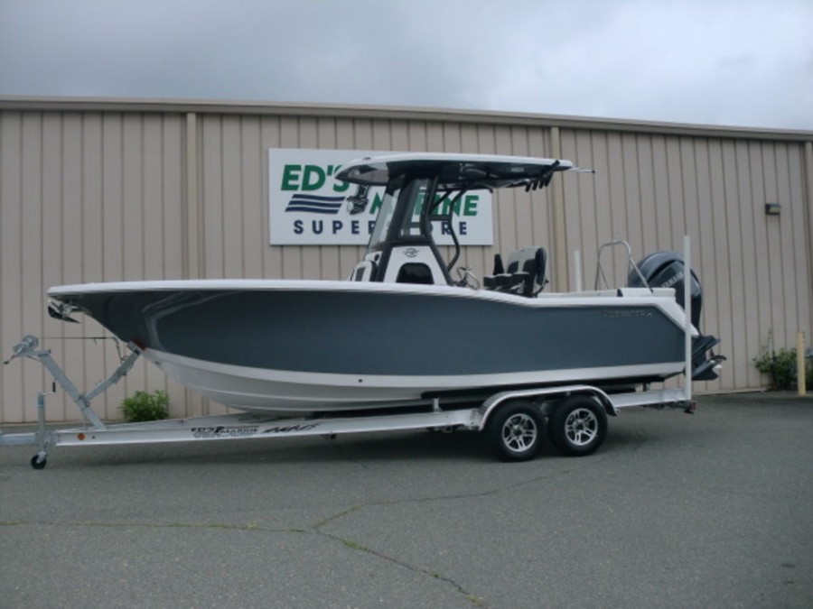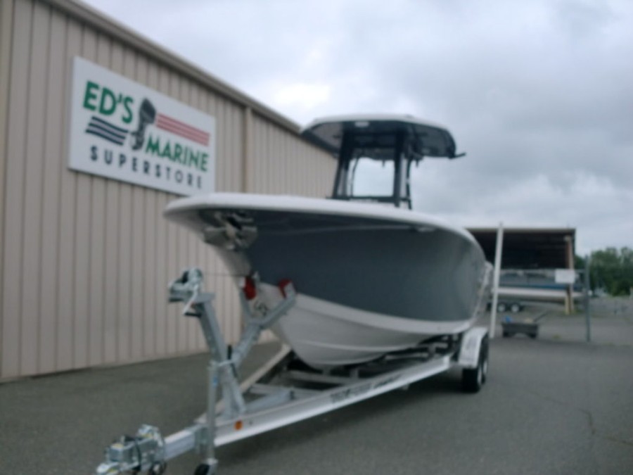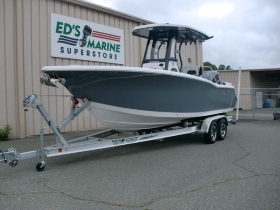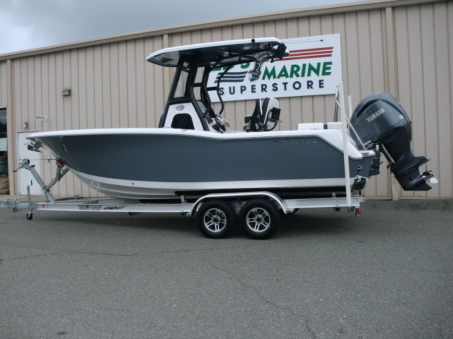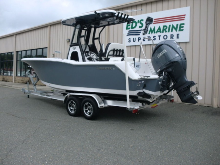 TIDEWATER BOATS PRESENTS THE BRAND NEW 2026 Tidewater 232 SS Center Console. This pristine vessel features an elegant oyster gray finish with a durable black powder coating that protects against the toughest marine conditions.