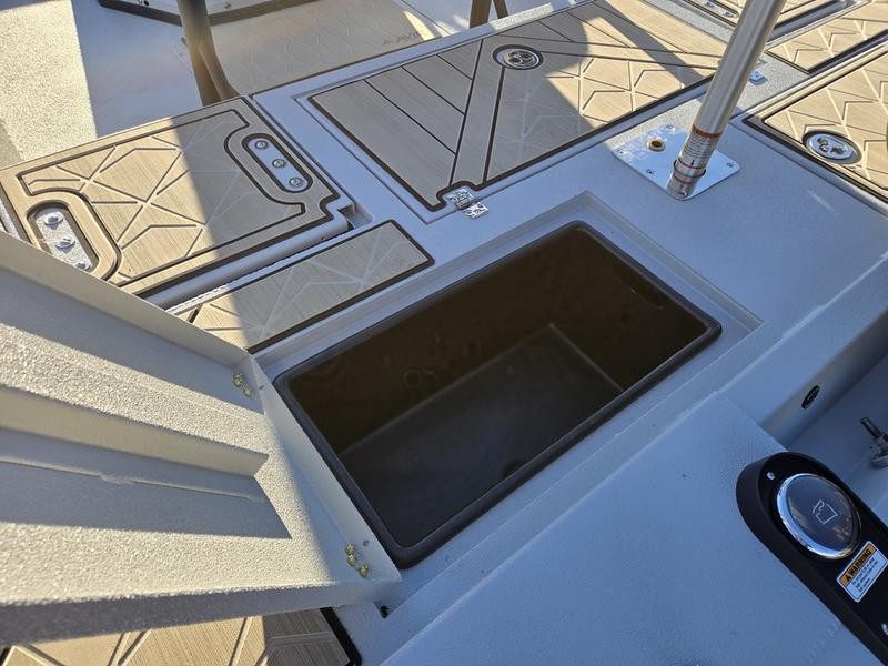 The Fusion offers aft and forward live wells with high‑speed aerator pickups, recirculation pumps (500 GPH), and 800 GPH aerators. A 1 ⅛” standpipe overflow/Drain for the aft live well ensures efficient water handling.