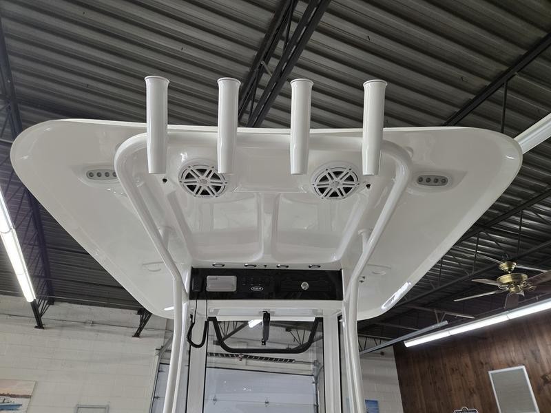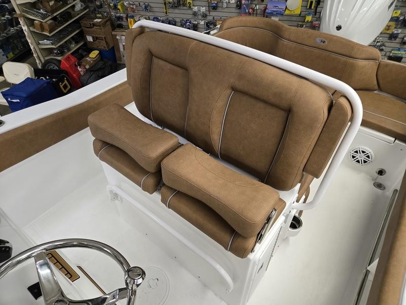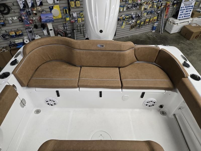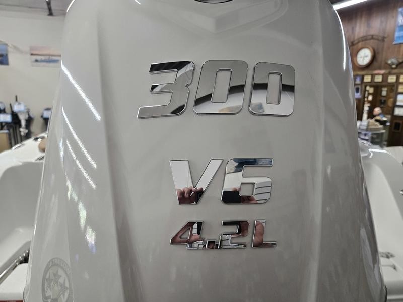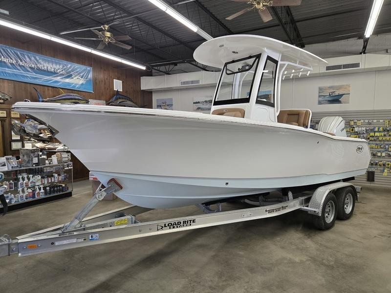 With a length overall (LOA) of 24 ft 3 in., an beam width of 8 ft 6 in. and a draft of only 14 inches, this center console offers excellent stability while still being highly maneuverable in tight spots. The boat’s dry weight is approximately 3,900 pounds.