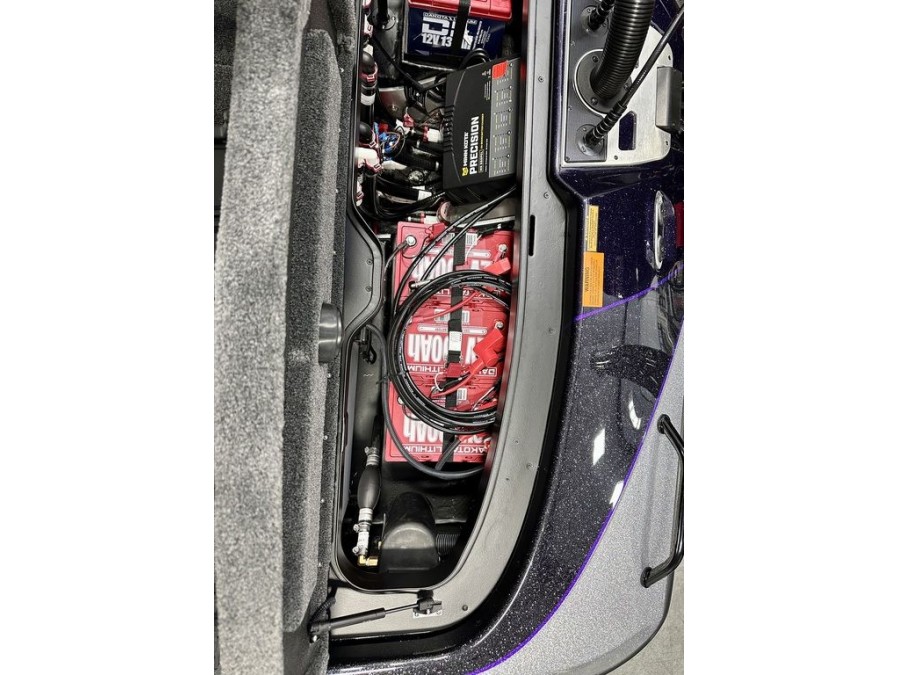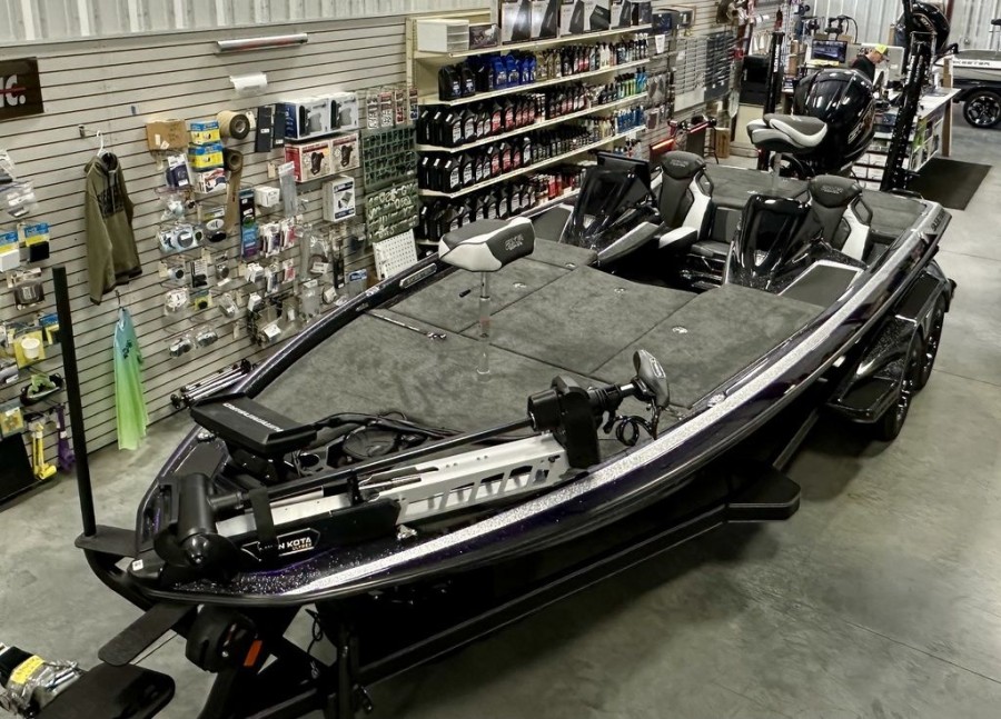 Power comes from four Dakota Lithium Batteries paired with a 550PCL charger for extended endurance. The boat also offers five trays, optional crank battery drop‑in capability, and the unique Twilight Purple color option for a striking look.