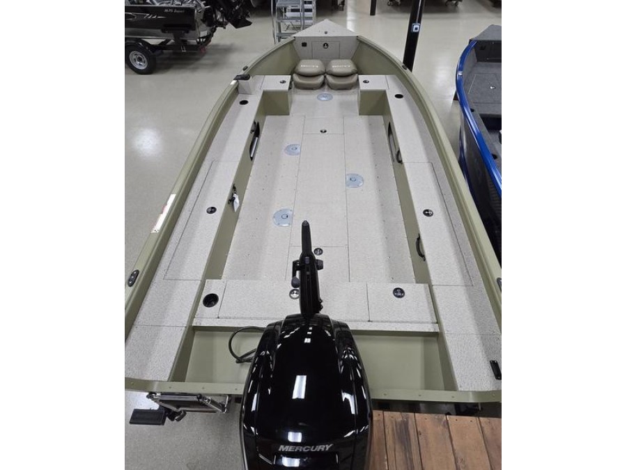 This boat is built to endure the rigors of northern fishing guides, hunting expeditions and general utility use. Its Deep‑V hull cuts through chop while a convenient tiller drive keeps steering easy in rough conditions. Choose from two camouflage finishes or add rod storage to keep gear organized year after year.