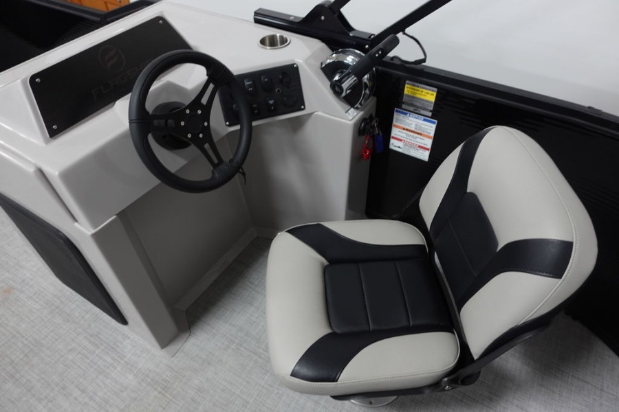 Discover the 2022 Flagship E16 FF pontoon boat, a fresh‑new model built for smooth cruising on calm waters. This sleek aluminum hull measures six metres in length and is powered by an uninstalled Suzuki 25 hp four‑stroke engine that delivers reliable performance while keeping fuel consumption low.