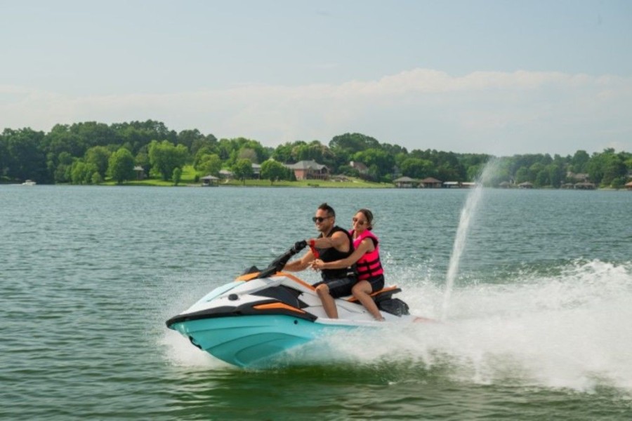 Control is effortless with the integrated RiDE® Throttle Control System. This revolutionary feature allows riders to smoothly transition between forward motion, neutral positioning, and reverse without complex adjustments, significantly simplifying docking and maneuvering in tight spaces. The JetBlaster LTD also features a custom-tuned electric trim system that enhances agility, enabling thrilling spins and athletic riding maneuvers.